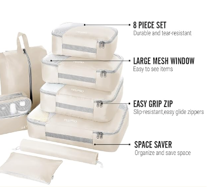 Travel smarter and more organized with the OlarHike Packing Cubes! This 8-piece set is expertly designed to make packing and unpacking a breeze, helping you to manage your luggage efficiently whether you’re heading out on a weekend getaway or a month-long adventure.